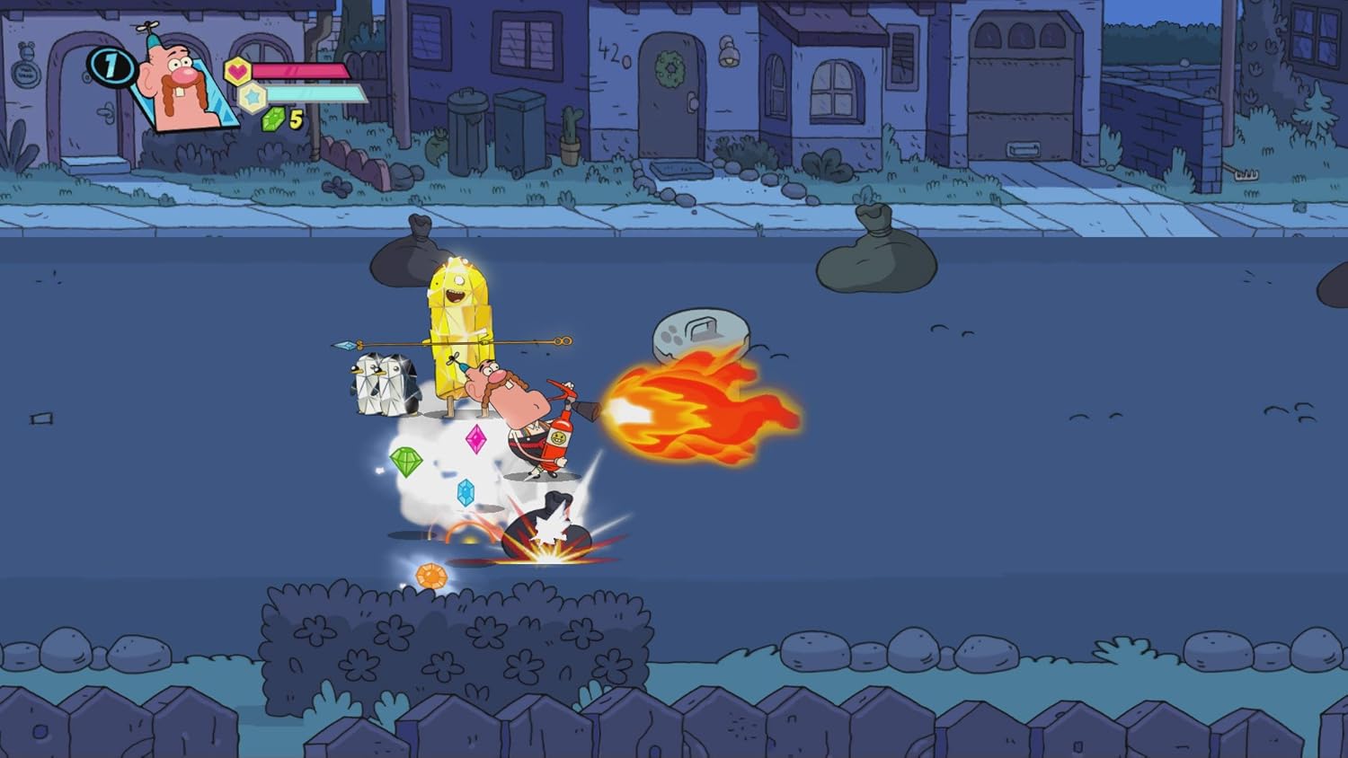 When Uncle Grandpa accidentally drives the UG-RV through multiple dimensions, he picks up some surprise passengers in the form of Gumball, Steven Universe, Finn, Mordecai and Clarence! Now they'll have to band together to defeat the evil shard creatures and set things right. Use each character's unique attacks and special moves to conquer the elements, fight your way through all the levels and beat some brutal boss battles. Replay maps with special modifiers to switch up the fun, and unlock bonus rooms along the way. Take on the single-player challenge or grab up to 3 friends for multiplayer action in this crazy interdimensional adventure.
