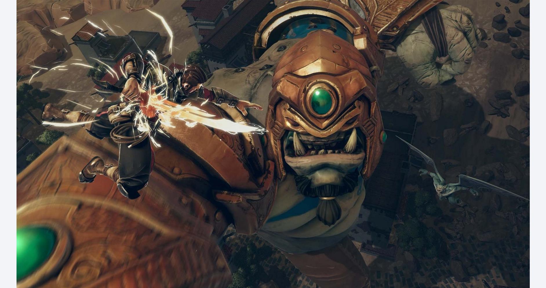 Legend calls them the Ravenii, encroaching armies of bloodthirsty monsters standing 150 feet tall that once threatened to destroy humankind. Now the threat has returned, and only those trained in the ways of the ancient order stand a chance at defeating the ogres. You are one of the world's last sentinels, a soldier named Avil equipped with the skills to battle the endless wave of Ravenii.