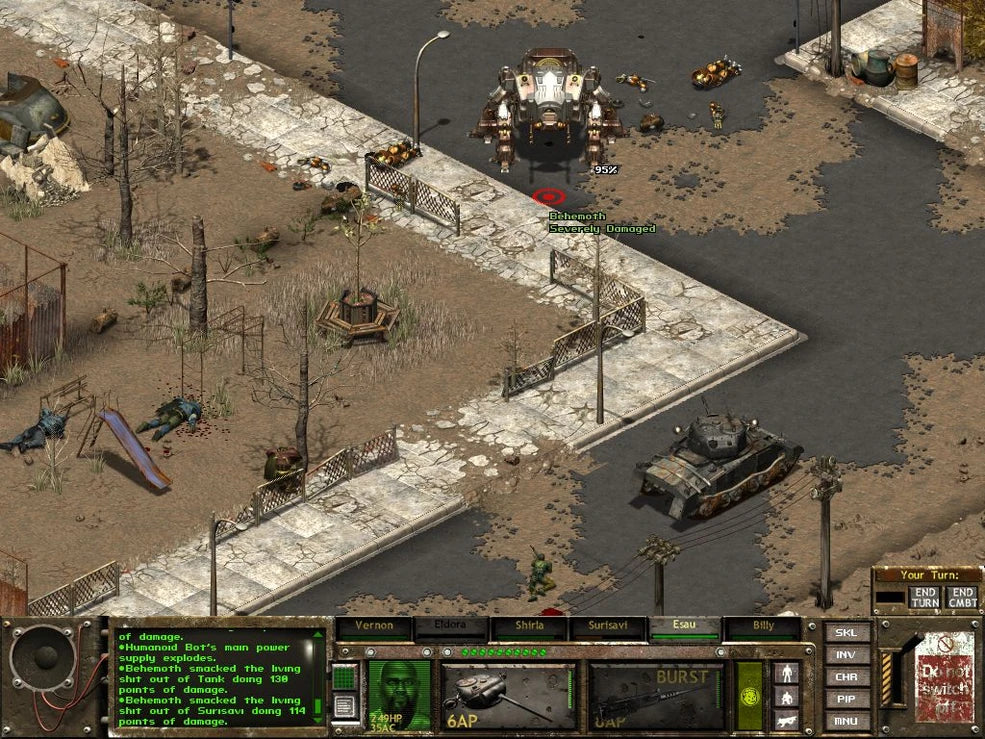 Between battles, your characters wander the wasteland in search of quests, barter for items, and interact with nonplayer characters whose reactions depend on the squad's reputation. It's enough to keep role-playing aficionados entertained, and action fans won't want to miss it. Note that Fallout Tactics is just as profane and violent as the other games in the series, and isn't for kids. --T. Byrl Baker