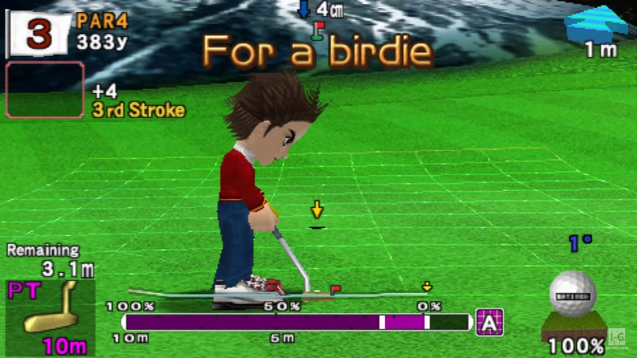Experience the newly designed gameplay elements designed for golfing on the go: faster rounds, more rewards and tougher competition. Whether it's the front nine, back nine or the entire 18 holes the mix of gameplay events cater to on-the-go gaming. Win the events and collect tons of items to customize your character's looks and abilities. Also, the more you play, the better your characters get, including longer drives or straighter shots. Finally with Wi-Fi capabilities, the competition is open to everyone. Anyone within your reach can join you in a head-to-head match or join in on real-time tournaments.