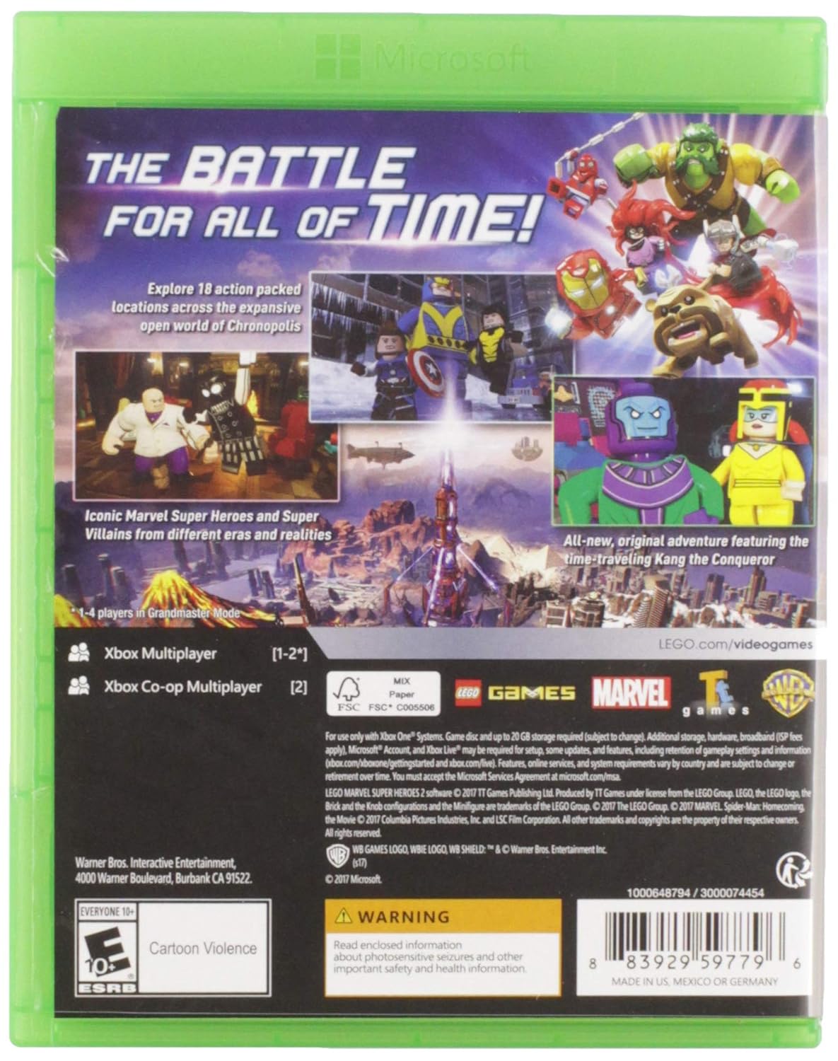It's about TIME! Join your favorite Super Heroes and Super Villains from different eras and realities as they go head-to-head with the time-traveling Kang the Conqueror in the all-new, original adventure, LEGO Marvel Super Heroes 2! Play as the Guardians of the Galaxy, Spider-Man, Thor, Hulk, Black Panther, Captain Marvel, Doctor Strange, Carnage, Green Goblin and dozens of other Marvel Super Heroes and Villains in this cosmic battle across the time-tossed city of Chronopolis! Travel across lands -- from Ancient Egypt to The Old West, Planet Hulk and New York City in 2099 -- and transport objects or characters through the centuries! And, with new battle modes, friends and family can play against each other in a series of themed challenges and battle arenas!