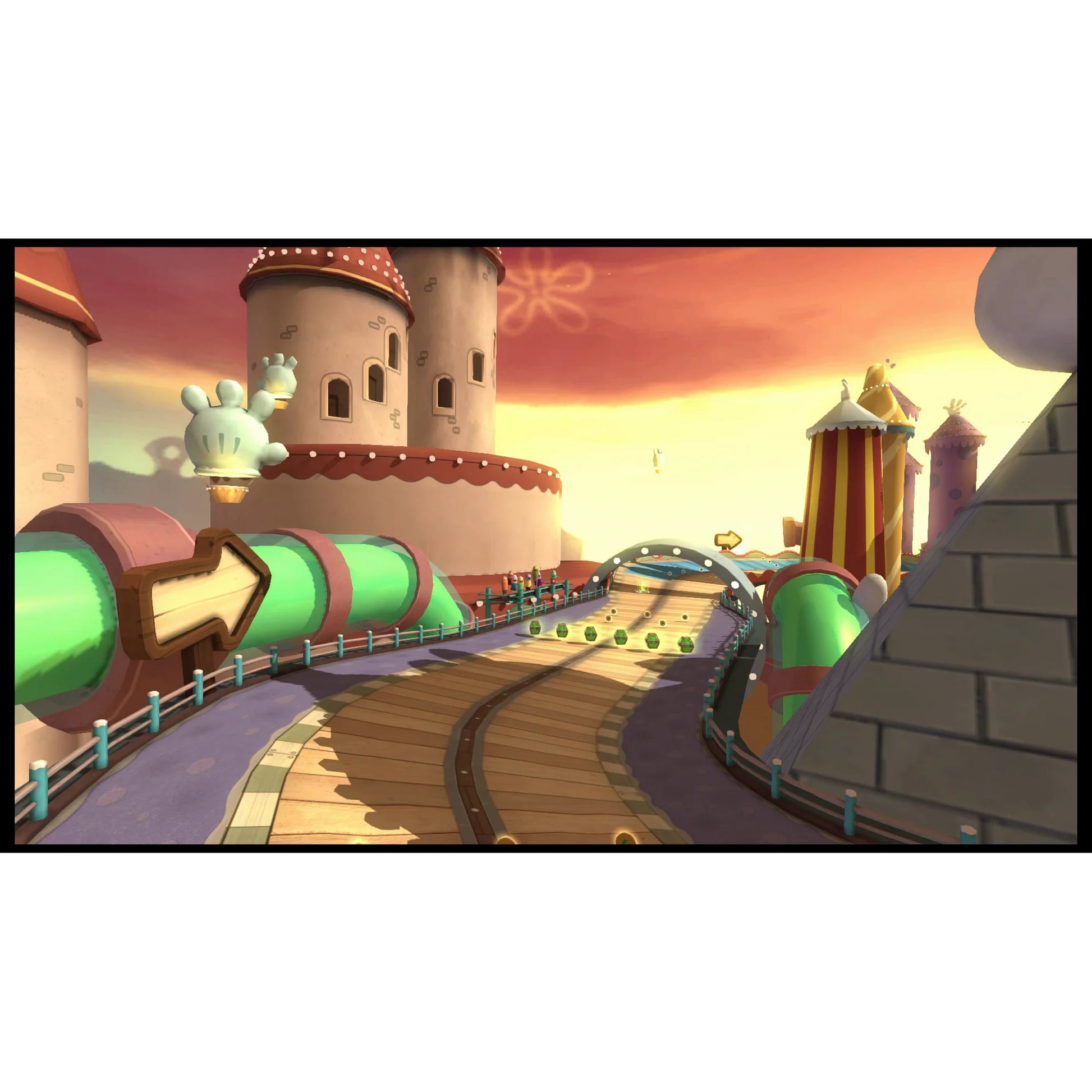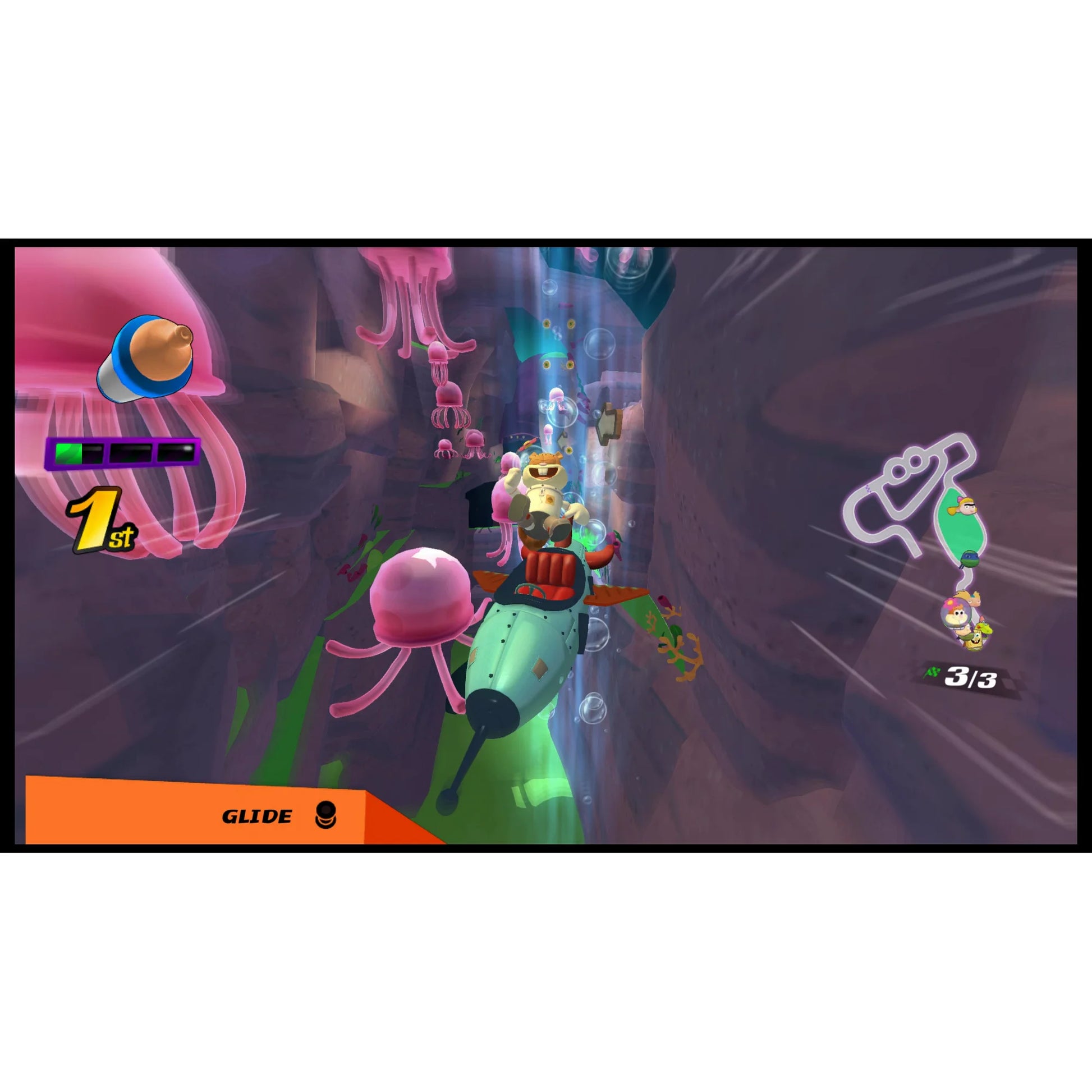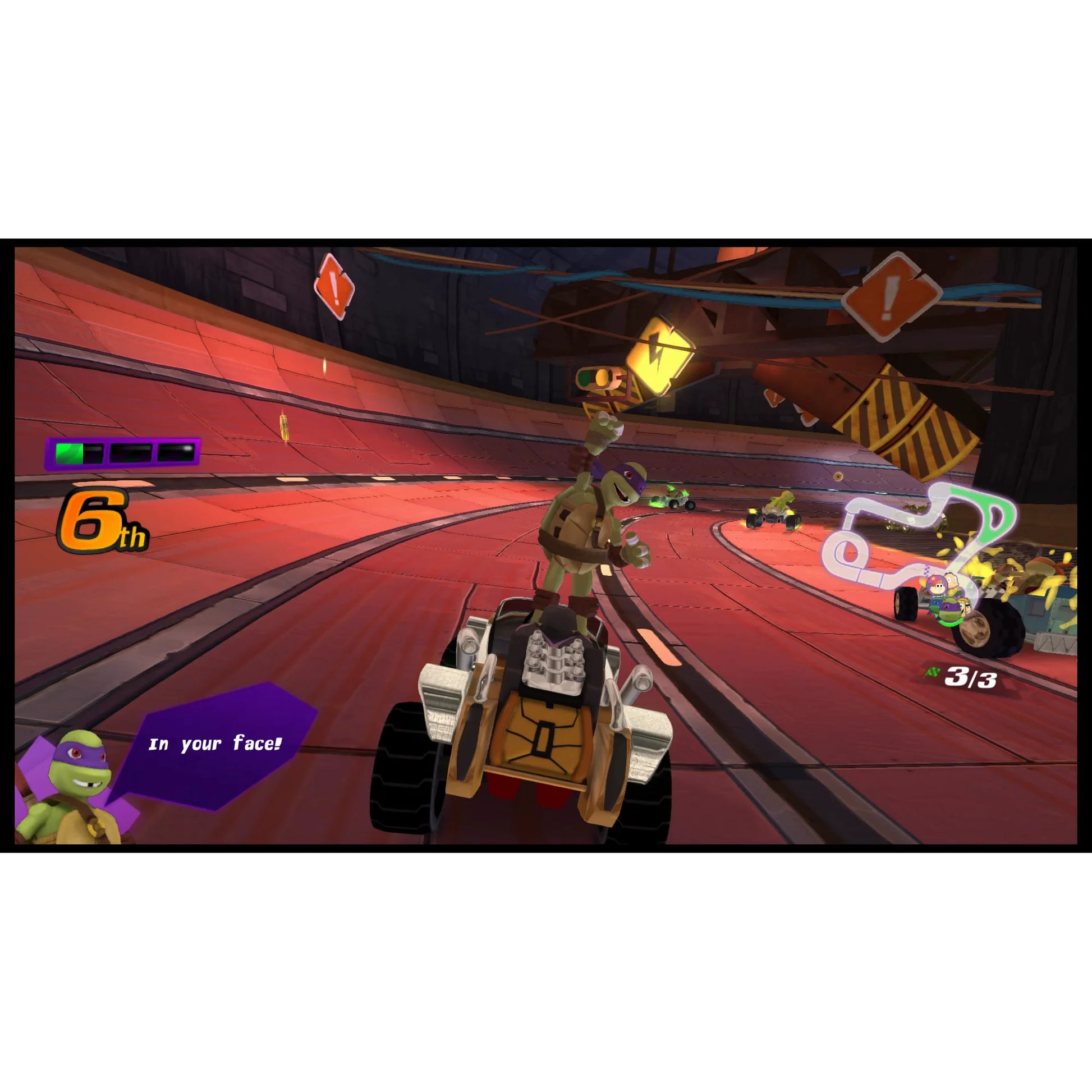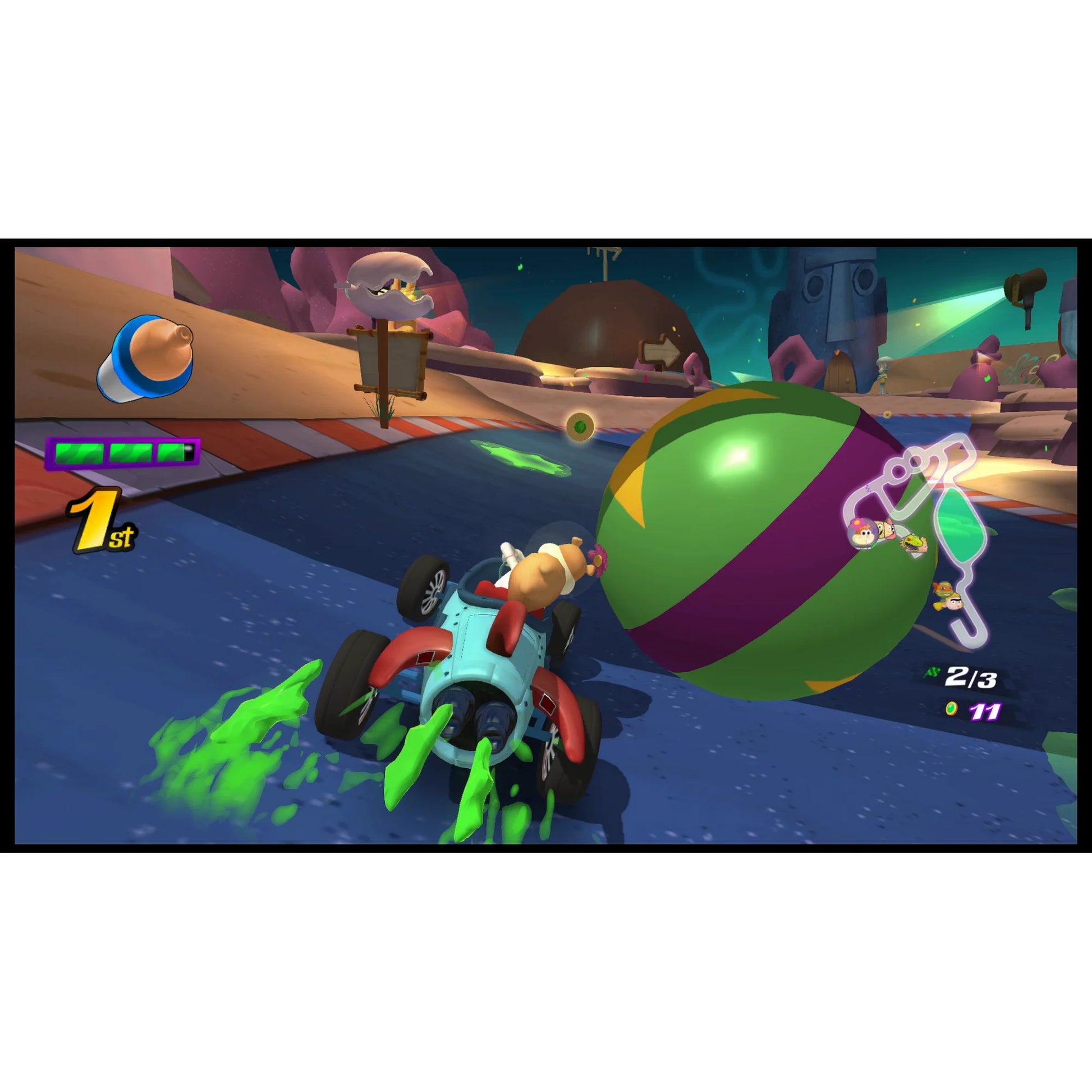 Hit the Slime-filled race tracks with Nickelodeon Kart Racers! Select a racer from one of your favorite Nickelodeon series, including SpongeBob, Patrick, and Sandy from SpongeBob SquarePants, Leonardo, Raphael, Michelangelo, and Donatello from Teenage Mutant Ninja Turtles, Arnold and Helga from Hey Arnold!, & Angelica, Tommy and Reptar from Rugrats. Race your friends in up to 4-player local multiplayer or check out the Battle Arena for a variety of challenges.