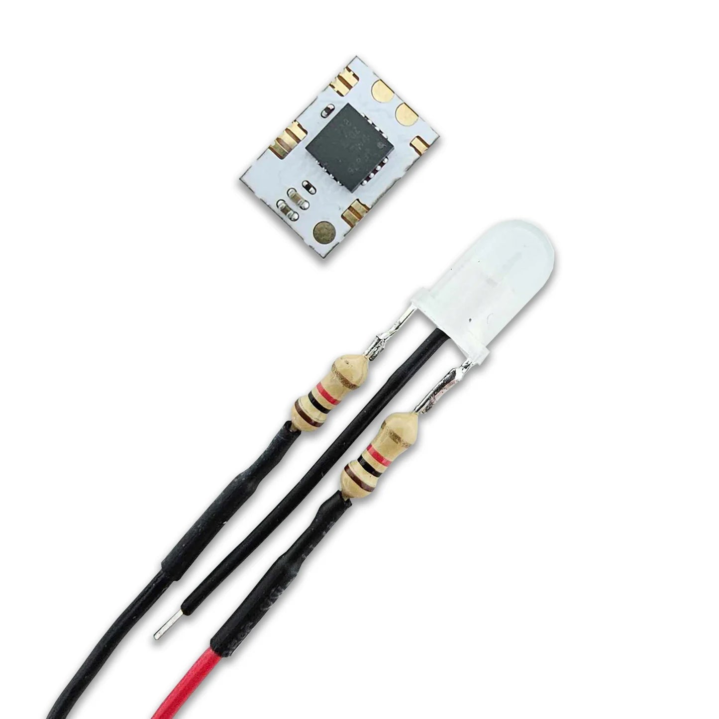 Comes with pre-soldered LED and wire.